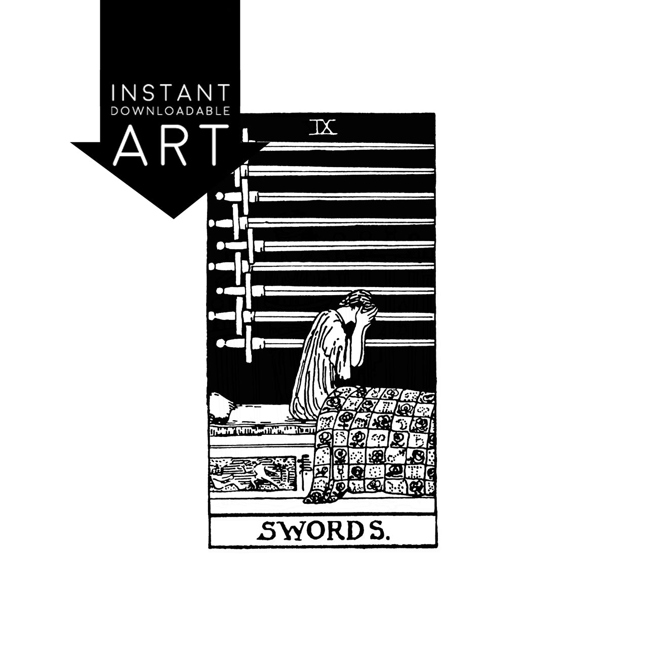 Nine of Swords Tarot Card | Digital Print